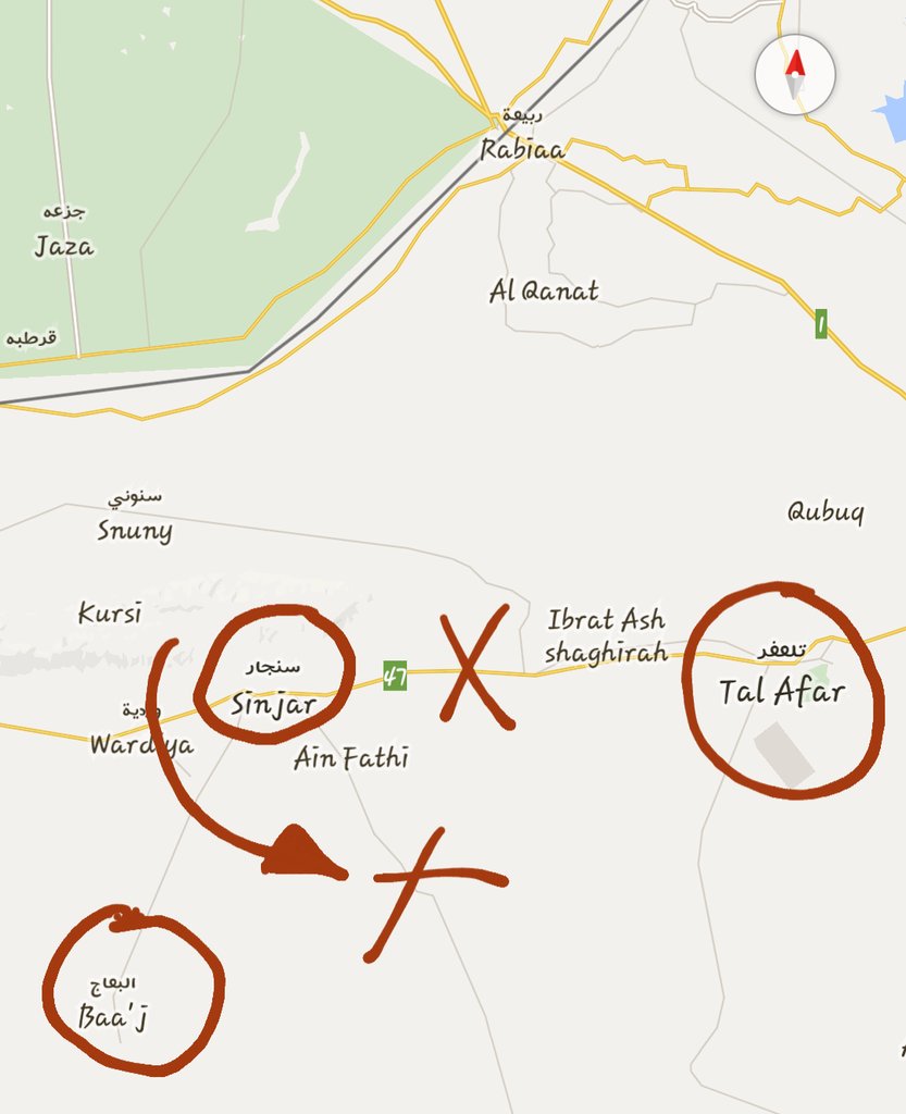 The multi-pronged allied assault cut off Sinjar from Baa’j and Tal Afar before the final push. Image courtesy of Kurdish sources.