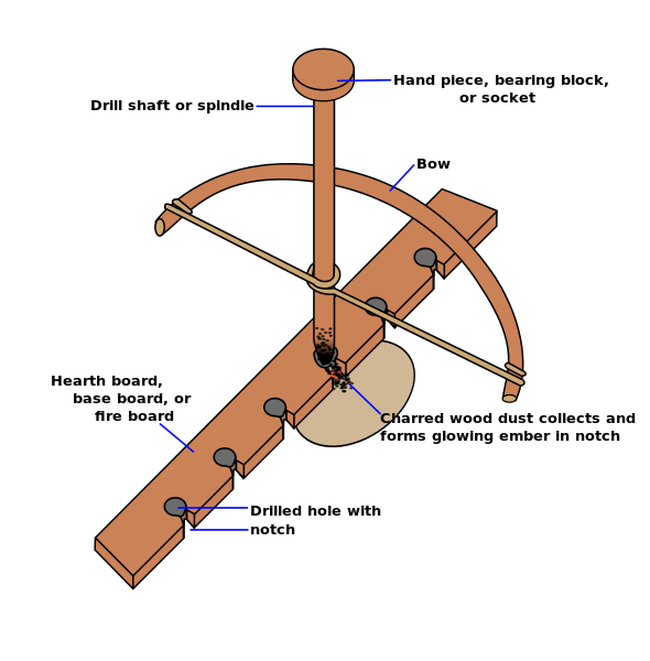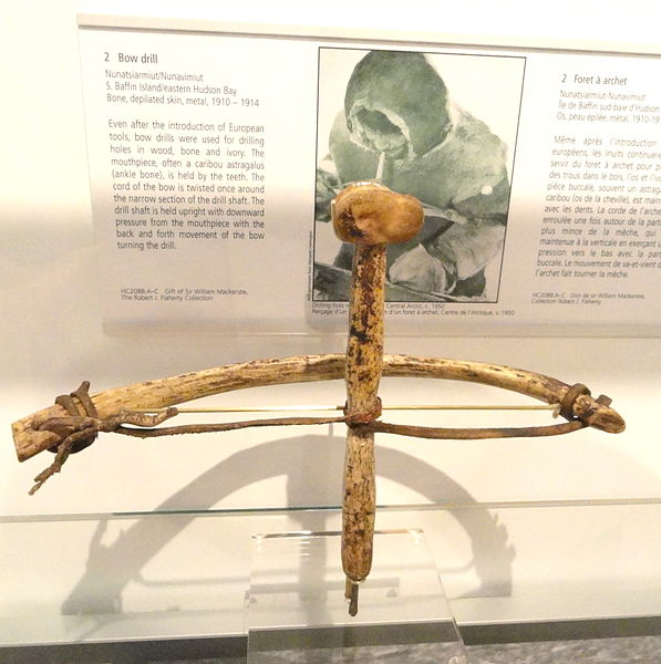 Bow drill, as used for fire starting. Photo; Wikimedia Commons