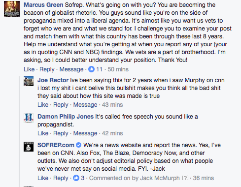 So, that brings us to the current controversy around echo chambers, fake news, and media bias. SOFREP’s writers and editors usually don’t even read the Facebook comments on our articles as we find most people just read the headline and then post an emotional response. Don’t get me wrong, we like hearing from readers and are open to disagreements and further discussion, but we have to compare apples to apples first. That reminds me of a Special Forces veteran who contacted me about how inaccurate an article I wrote was. After going back and forth a few dozen times, he conceded that he did not actually read the article. I felt embarrassed for him.