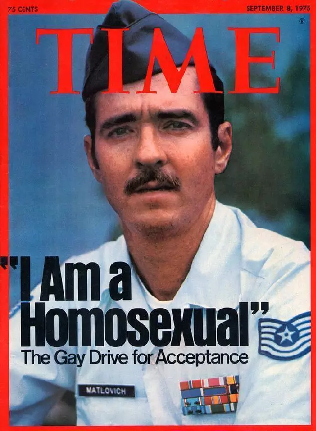 So what did Matlovich do? He became a prominent gay activist and outed himself to the rest of the world by appearing on a TIME magazine cover with a black, bold quotation below his photo, “I Am a Homosexual.”