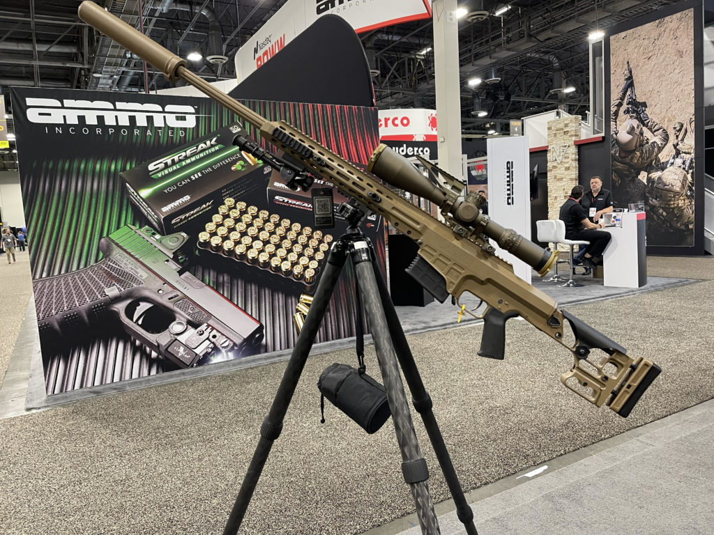 Of course, the guns were the stars of the show, and we saw some spectacular ones. You’ll be reading more about them in detail in the not-too-distant future. The Barrett firearms sign drew me to their display like a moth to a flame. The folks there were kind, knowledgeable, and eager to tell me all about their amazing line of rifles.