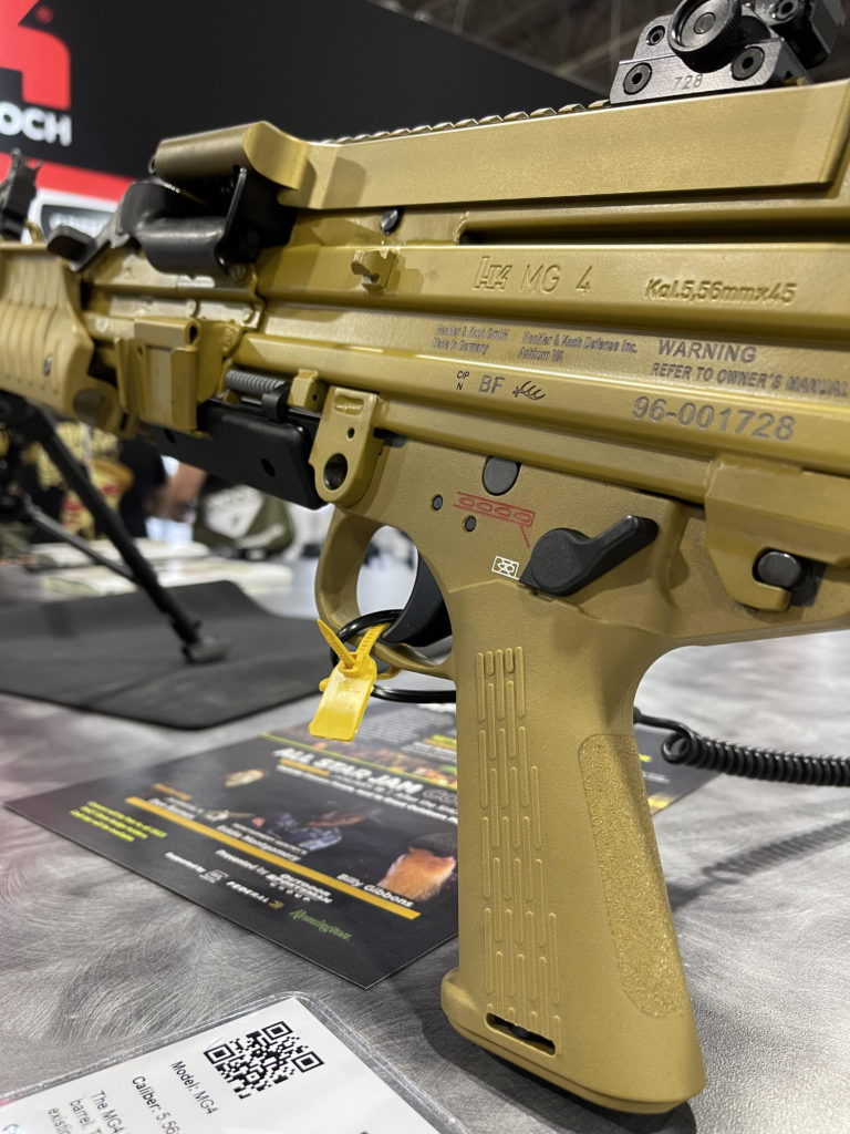 It’s not news that the Germans make some pretty impressive weapons, and Heckler and Koch had a strong presence at the show. Here we see an MG4 light machine gun chambered in 5.56. It features an integrated bipod and can be vehicle mounted and used as a main or secondary weapon.