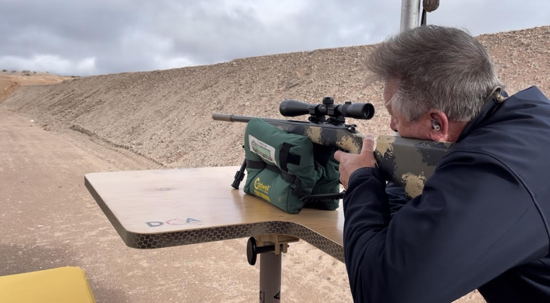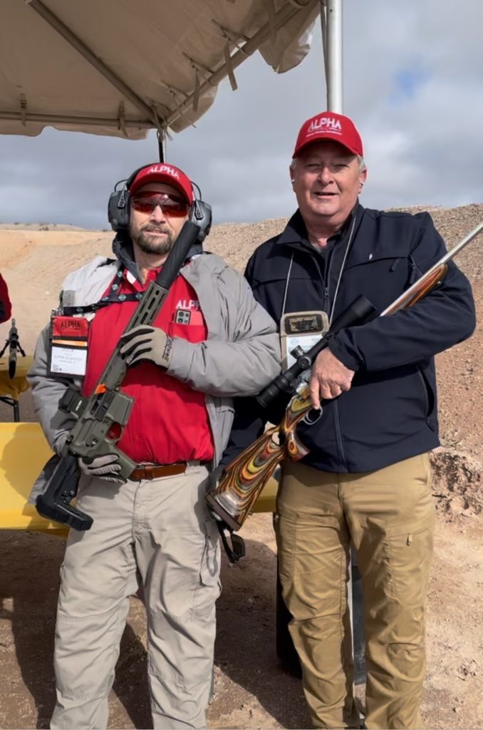 I could write a 10,000-word piece just on the range, but I’ll concentrate on the most impressive thing I experienced that day, and that is the almost unbelievable silencing ability of an Alpha Silencer on a 300 Win Mag. As he pulled the trigger, I was standing fewer than 3 feet away from Sean (convinced by everyone that I would not need hearing protection). The report was no louder than someone closing your typical refrigerator door. It was so quiet that I almost missed hearing the shot, and I thought the Alpha guys were playing some kind of gag on us. But it was no gag; the titanium silencer is touted as the best in the world, and I do not doubt that it is.