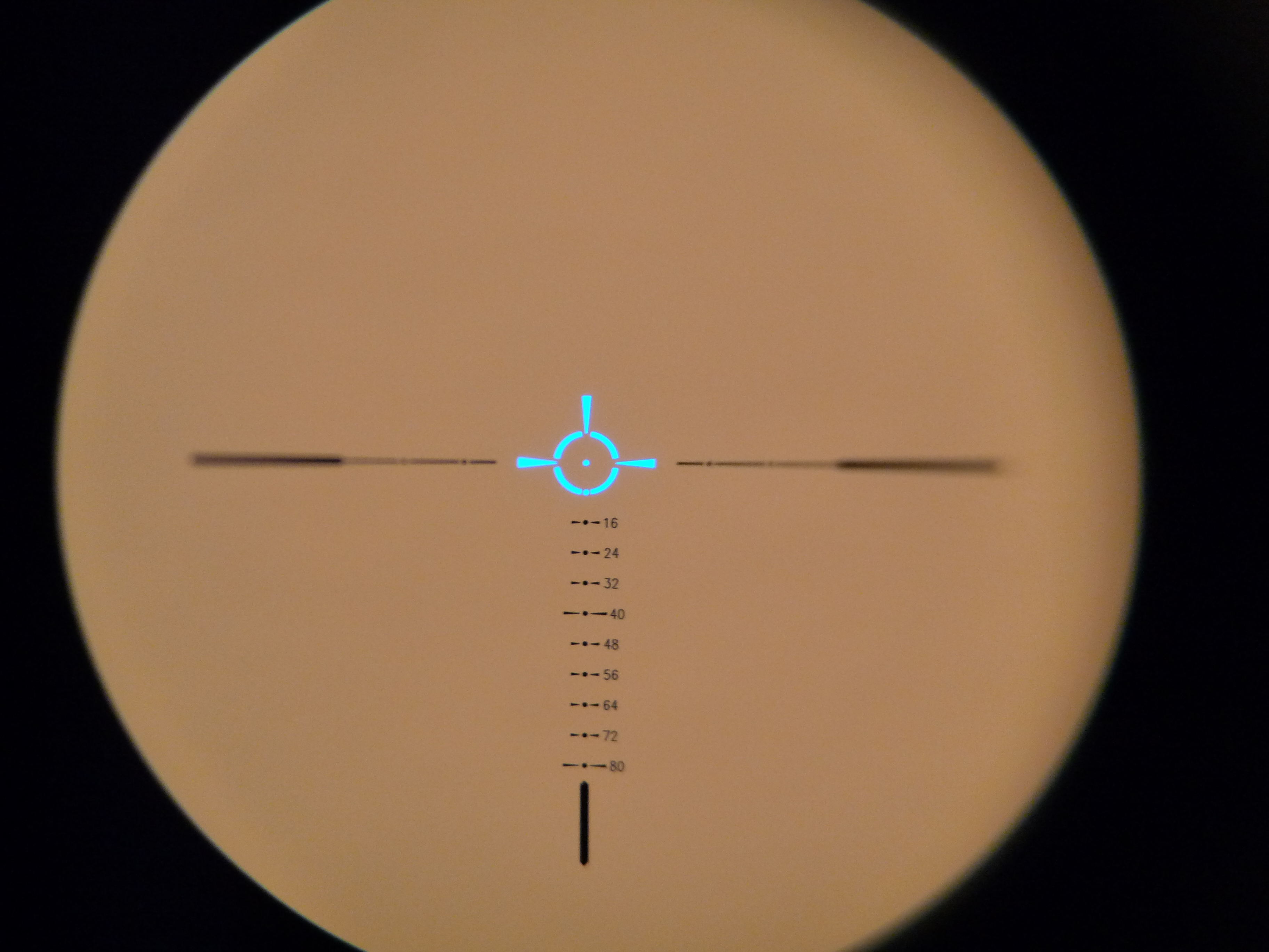 The P7 reticle, in blue mode. Switching to red takes just a couple of seconds