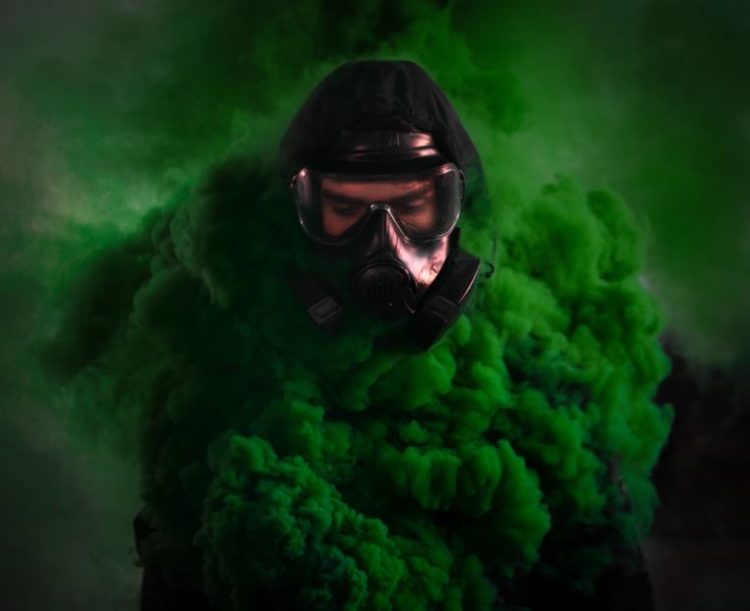 U.S. Marine Corps Lance Cpl. Everett Radcliffe poses for a portrait in an M50 joint service general protective mask. (U.S. Marine Corps photo by Lance Cpl. Zachary Zephir).