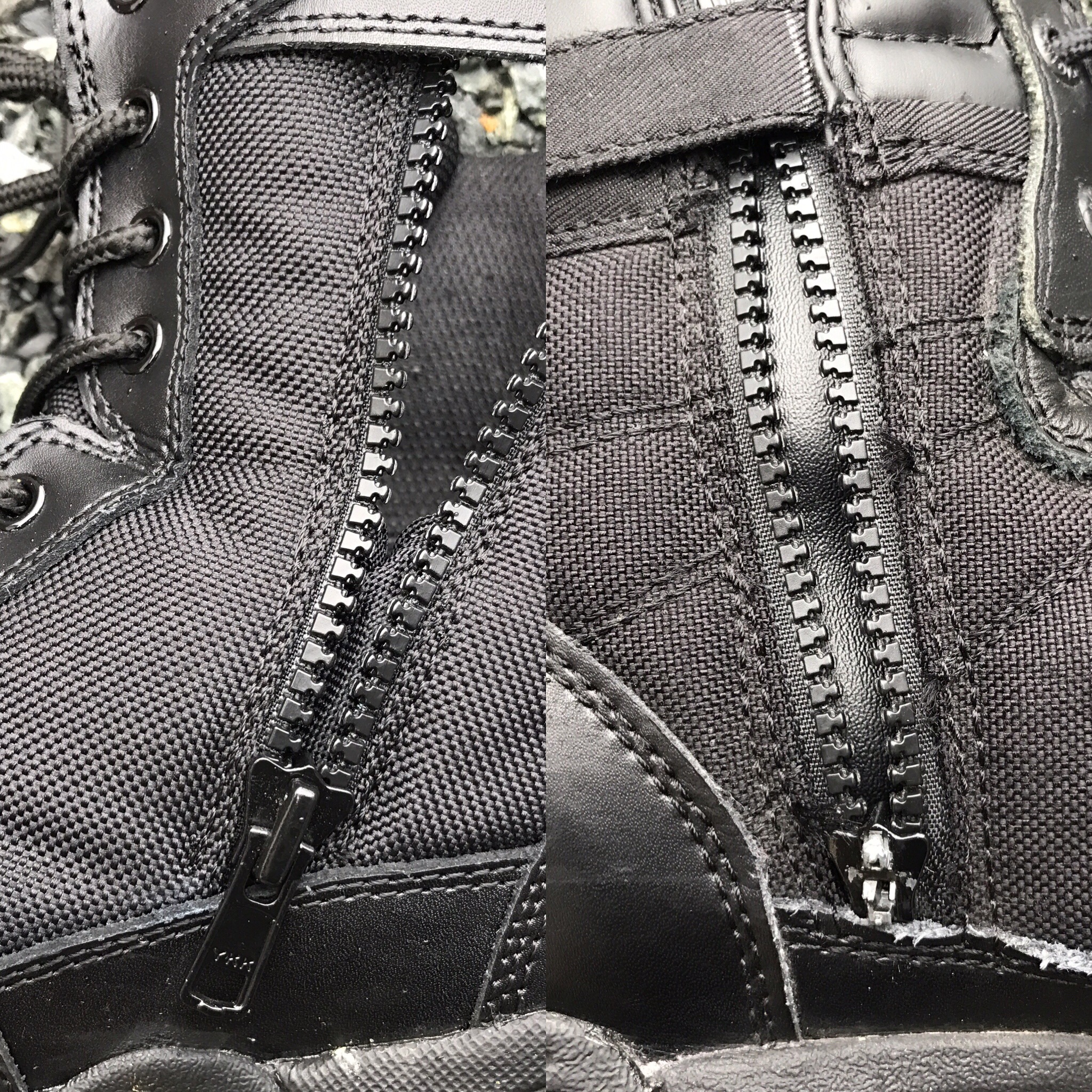 Both boots used for approximately 2-3 months (left) Maelstrom Tac Force 8″ Boots (right) work provided 8″ boot