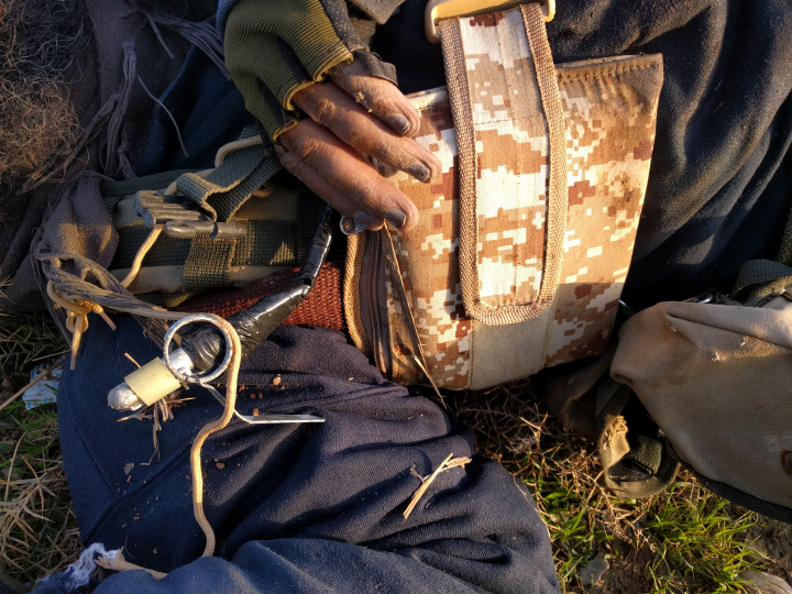 Just before dark we departed the observation post for the safehouse — an abandoned home inside a walled compound with a controlled access road. Along the way, we stopped to take a close look at a dead ISIS suicide bomber, killed by a headshot from an Iraqi Special Forces soldier before he could detonate his vest. He looked North African, the guys said. I thought so too.