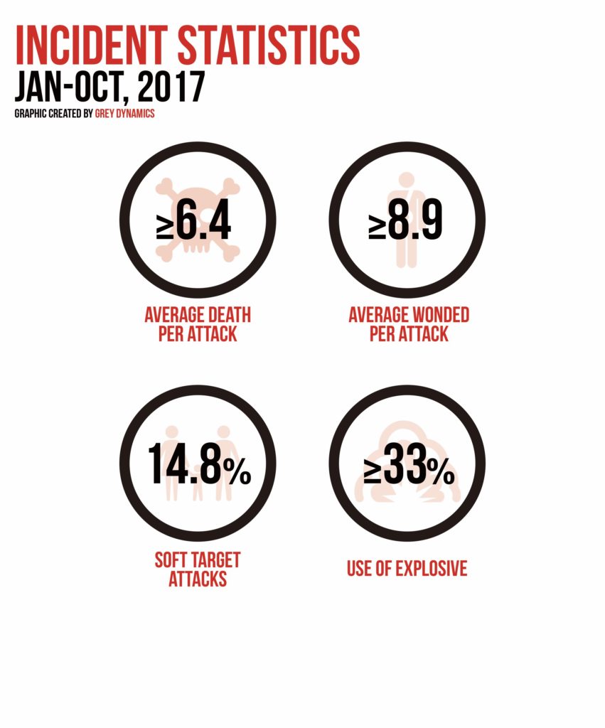 In 2017 we saw the merger of some of the ITGs operating in Mali, Jama’a Nusrat ul-Islam wa al-Muslimin‘ (JNIM) (Group to Support Islam and Muslims (GSIM) is a jihadist terrorist organisation in the Maghreb and West Africa, formed by the merger of Ansar Dine, the Macina Liberation Front, Al-Mourabitoun and the Saharan branch of Al-Qaeda in the Islamic Maghreb (AQIM). It is the official branch of Al-Qaeda in Mali after its leaders swore allegiance to Ayman al-Zawahiri (AQ).