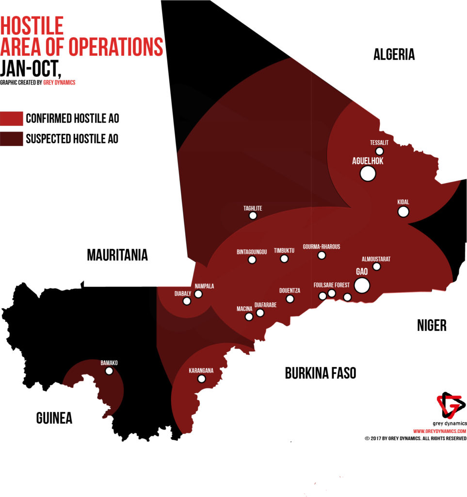 Islamic Terror Groups (ITGs) in Mali are unlikely to seize territory at present. Instead, the ITGs will attempt to disrupt Mali and neighboring countries like Niger, Burkina Faso, Algeria, and Mauritania. It’s clear that the ITG’s area of operations (AO) is expanding, and due to recent mergers and the creation of JNIM, the ITGs are likely to increase their operational tempo. As the Islamic State has set up a branch in the Mali, both groups will be trying to prove who is the dominant organization in the region.