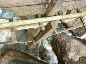 This was by far the most sturdy bridge I came across–and yes, those are crocs. Highly recommended in the jungle, not so much in the US.