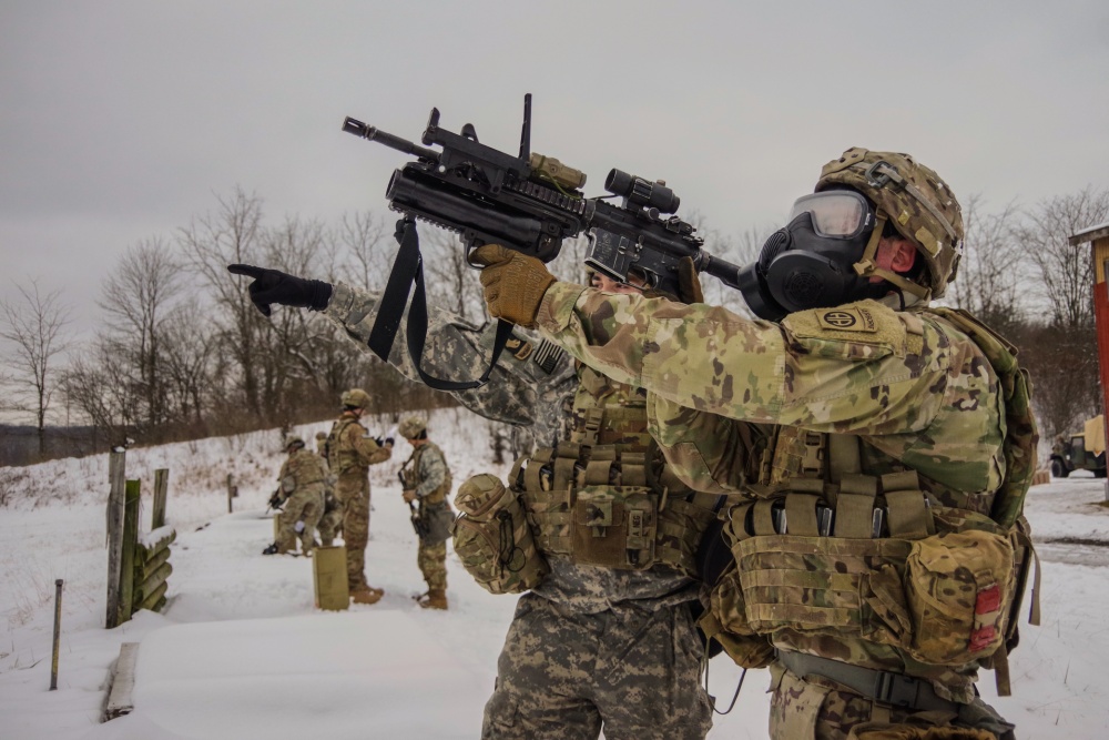 A U.S. Army paratrooper assigned to the 1st Battalion, 508th Parachute Infantry Regiment fires an M320 Grenade Launcher while conducting a live-fire range January 16 at Camp Atterbury, Indiana. (U.S. Army)