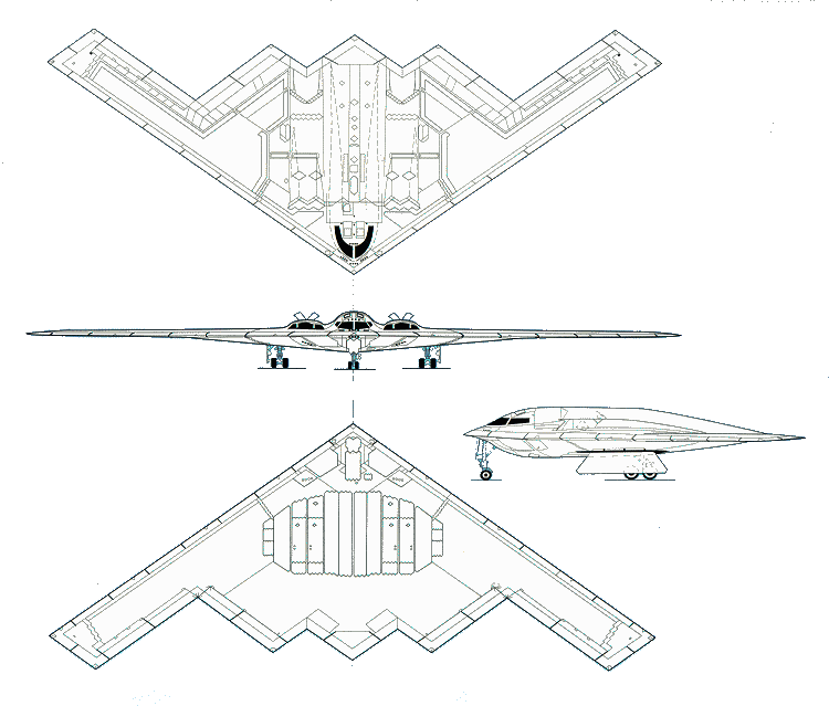 Engines: 4 × General Electric F118-GE-100 non-afterburning turbofans, 17,300 lbs of thrust each