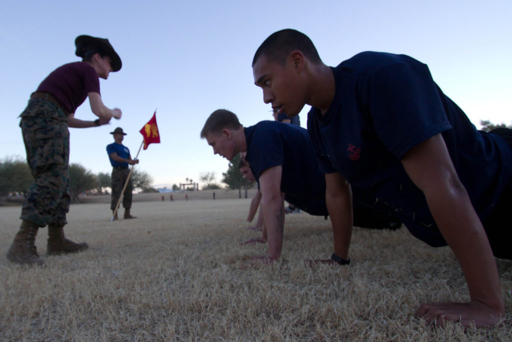 The recruits instantly dropped to the ground and began grunting them out.