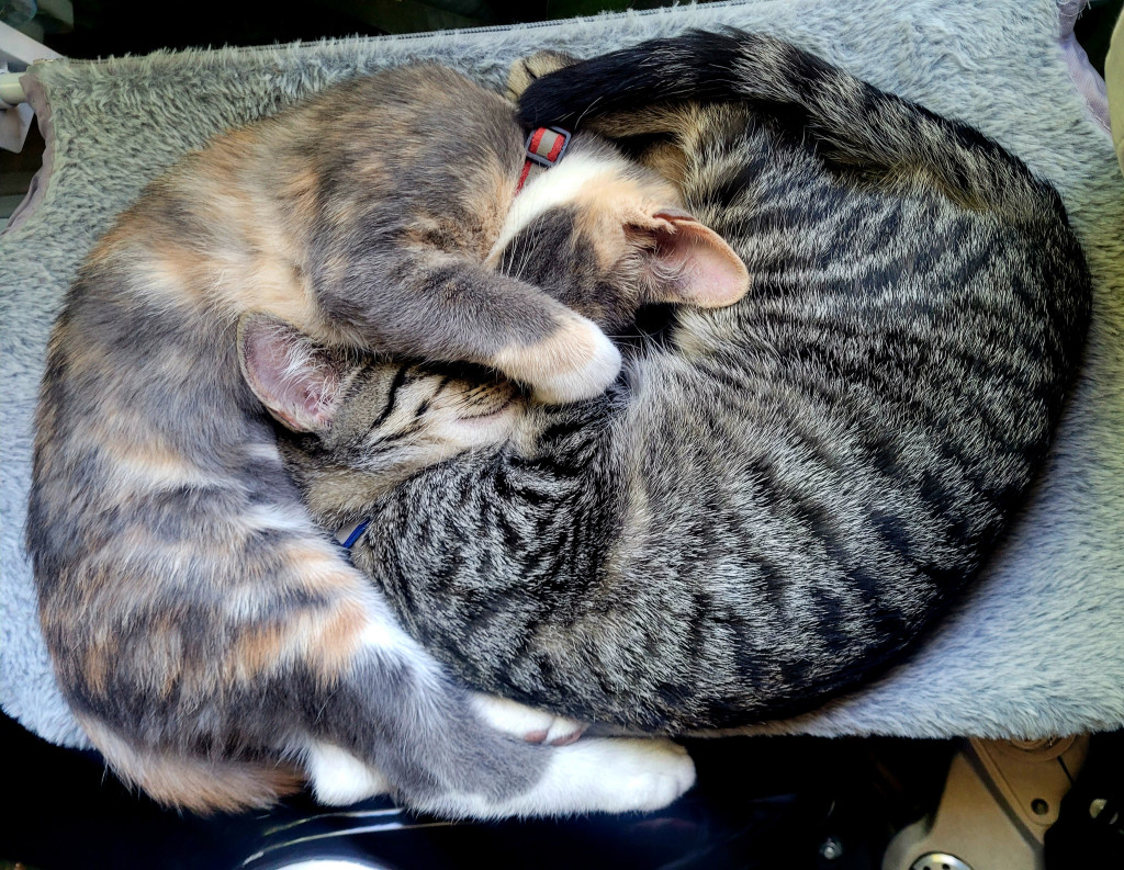 About a year later, two kittens were found in the alley behind our house. A brother and a sister. We are cat people again.