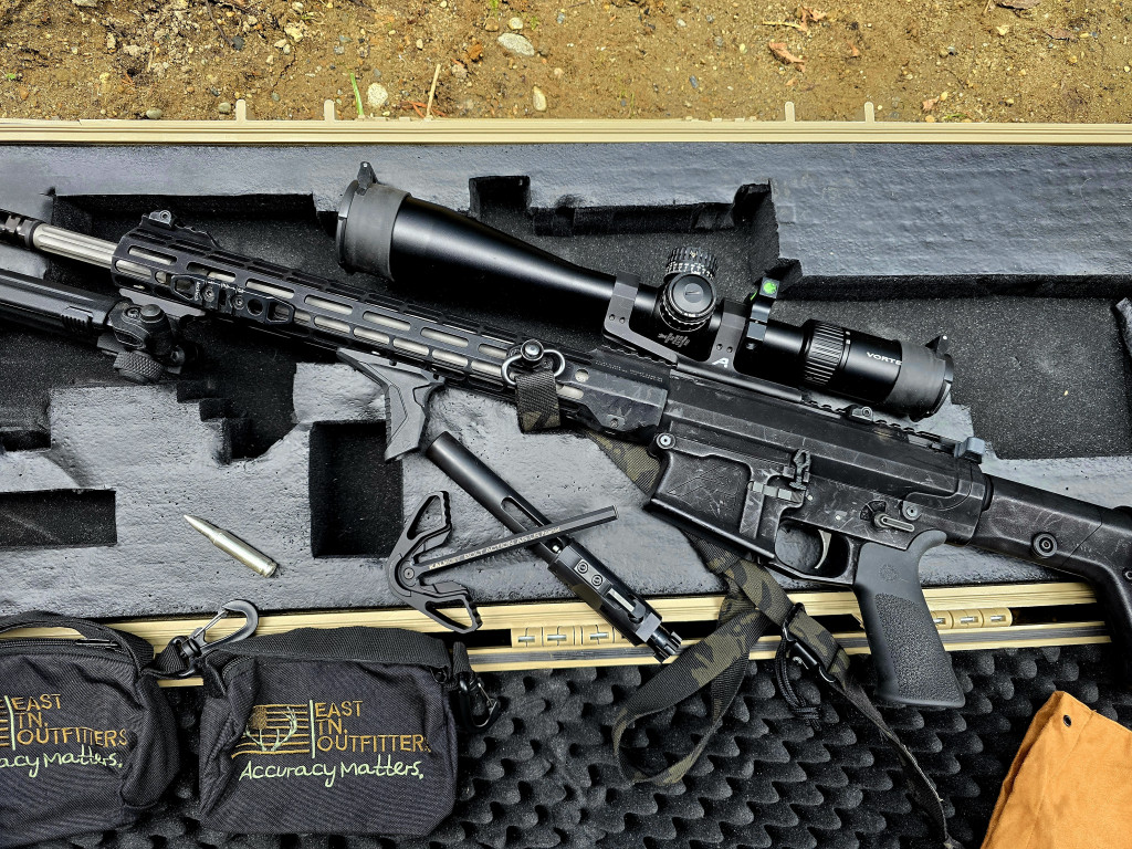 I live in Tacoma, Washington, and always the guy to support local business, I went with an Aero Precision build. I got their M5 lower and their complete M5 upper with a fluted 18″ barrel, 1:10 twist in 416R stainless steel, and M-LOK ATLAS S-ONE handguard. Paired with parts like Aero’s nickel boron bolt carrier, a Radian Raptor charging handle, a Hiperfire Hipertouch 24E trigger set at a crisp 3 pound pull, a Magpul PRS stock, Magpul 45° offset iron sights, a Hogue overmolded beavertail grip, a VG6 flash hider, a Viking Tactics sling in Multicam Black, and an Olight Warrior X4 light.