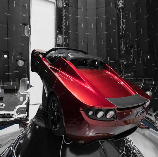 Musk’s Tesla Roadster will serve as a “mass simulator” inside the Falcon Heavy. (SpaceX)