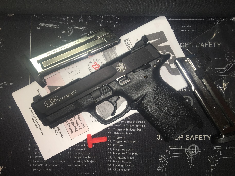 I was in the market for a .22 pistol. My local gun shop, Grays Harbor Guns brought the M&P 22 compact by Smith & Wesson to my attention. This gun fit the bill for what I was looking for and Grays Harbor Guns priced this made in the USA pistol, with the Smith & Wesson lifetime service policy, for an amount I couldn’t refuse. The suggested retail price of this pistol is $389.00.