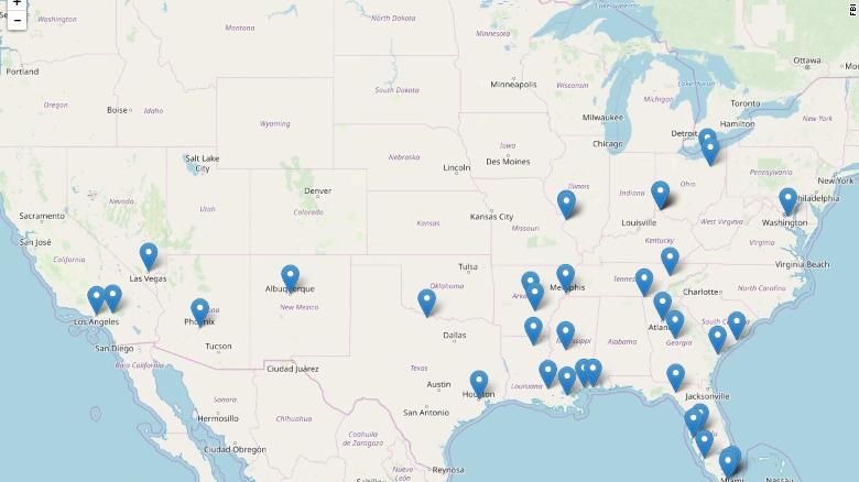 This FBI map shows the locations where Samuel Little killed mostly young women, according to his confessions.