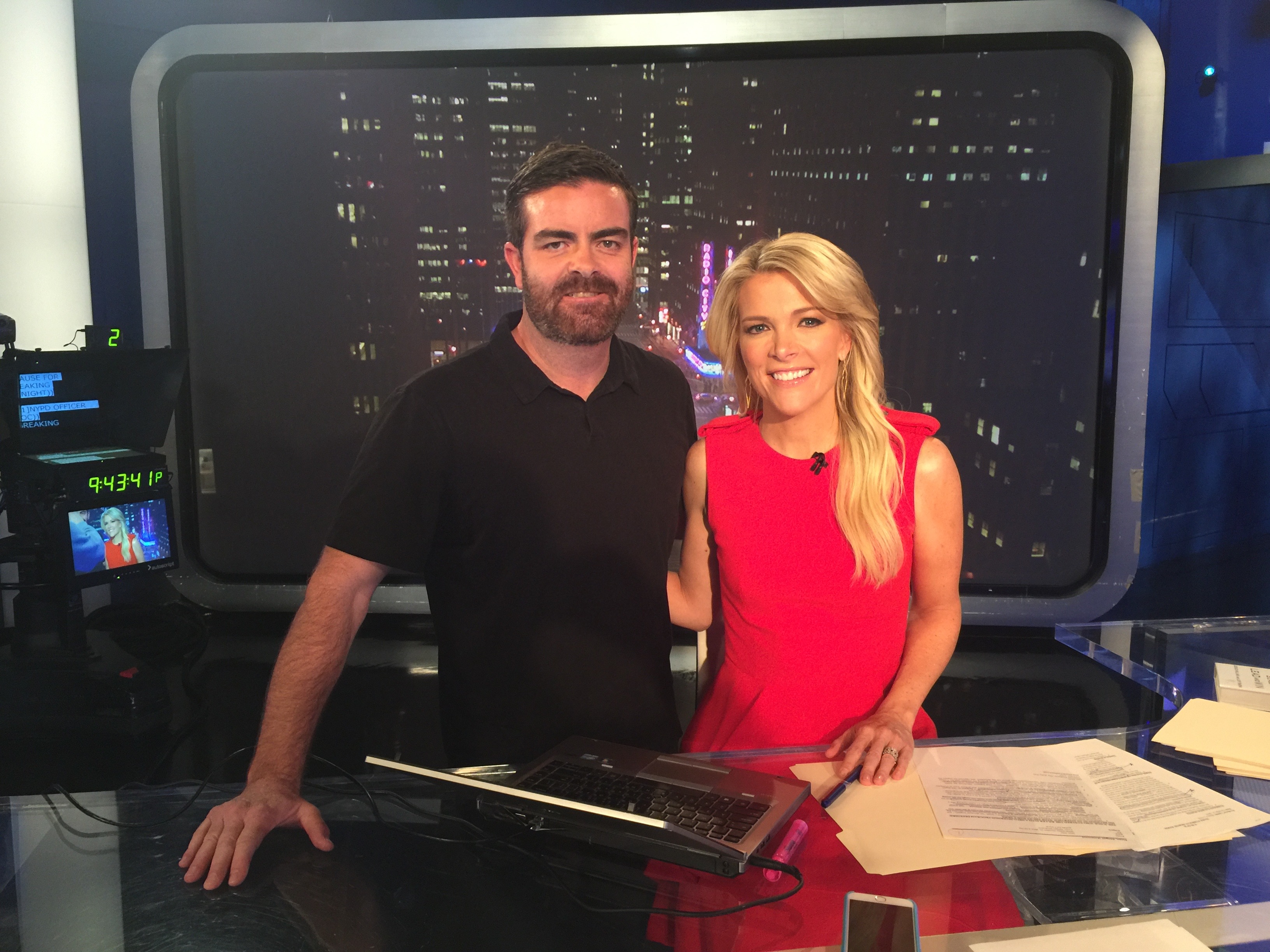 Post-interview, on set with Megyn Kelly of FOX News’ “The Kelly File.” I’ve been on Megyn’s show often, and she’s one of the smartest news media hosts I know.