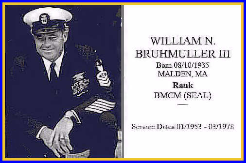 Bill retired from the Navy as a Master Chief (E-9) in 1978, after 25 years of service, and went on to other things, including a stint working in the commercial SCUBA diving industry. He retired to Panama City, FL, and there, lived with his family, which included young Will. For that fact alone, probably more than for his service to the country and the SEAL Teams, I am thankful for Bill Bruhmuller. Rest in peace.