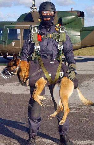 German shepherds are still used as war dogs by the American military but the lighter, stubbier Malinois is considered better for the tandem parachute jumping and rappelling operations often undertaken by SEAL teams. Labrador retrievers are also favoured by various military organizations around the world.