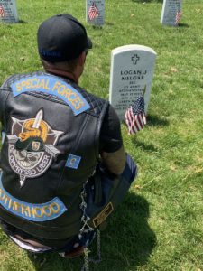 A Special Forces Brotherhood MC member visits the grave of SSG Melgar in Arlington.