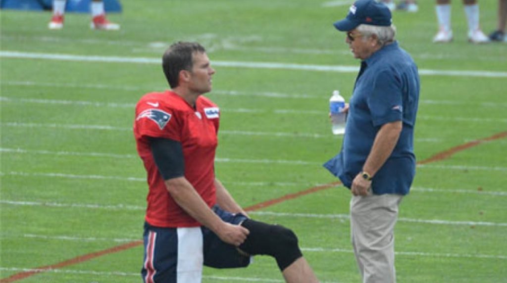 File photo of Robert Kraft and Tom Brady. The Patriots have used their venue to donate to charities for more than two decades. (Courtesy of author)
