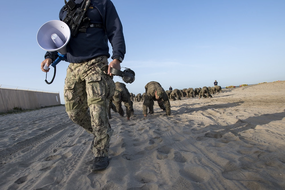 180123-N-PJ969-0159 Coronado, Calif., (Jan. 23, 2018) U.S. Navy SEAL candidates participate in Basic Underwater Demolition/SEAL (BUD/S) training. SEALs are the maritime component of U.S. Special Forces and are trained to conduct a variety of operations from the sea, air and land.(U.S. Navy photo by Petty Officer 1st Class Abe McNatt)