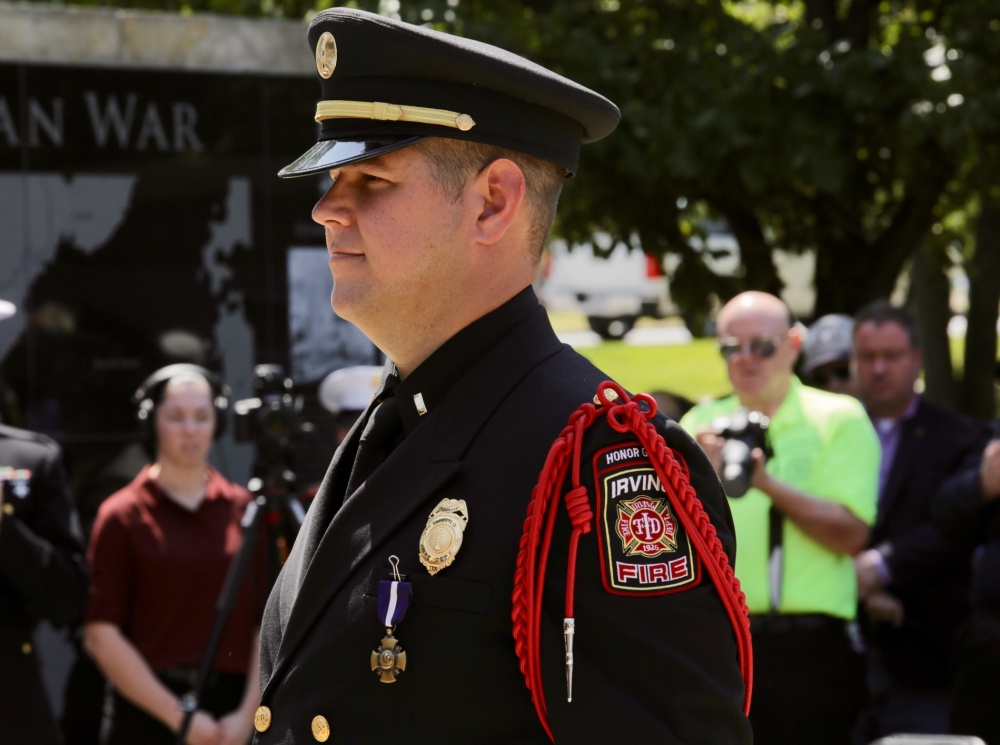 Irving, TX – Retired Staff Sgt. Eric M. Smith received an awards upgrade of his Silver Star to the Navy Cross in a ceremony in Irving, Texas, Sept. 14. Smith’s Silver Star, earned in 2004, was upgraded during a Department of Defense review of approximately 1,400 combat valor awards awarded since 2001.”