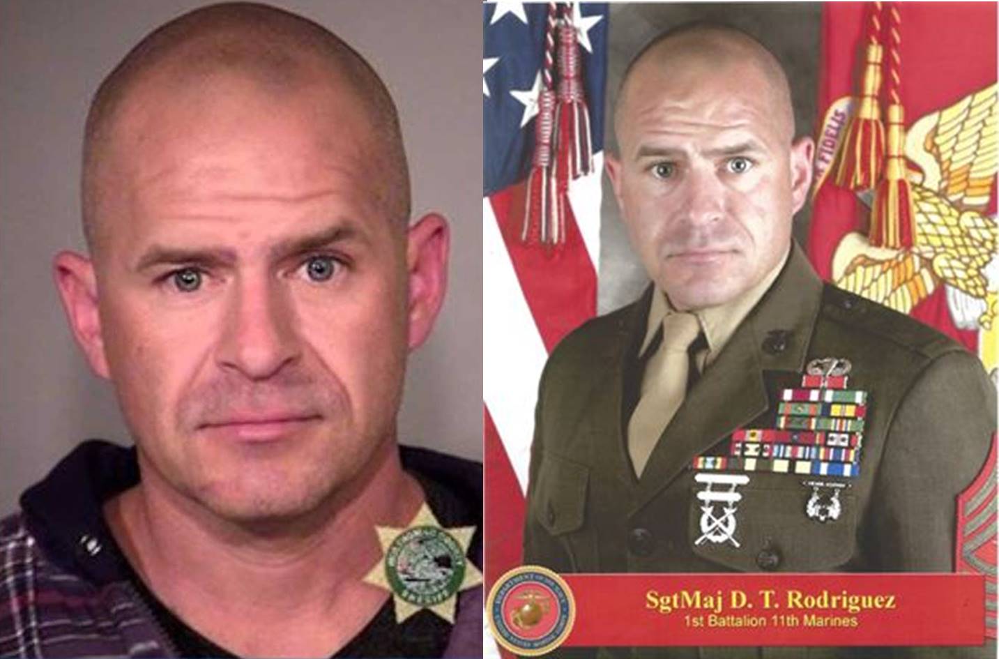 Sgt. Maj. Damien Rodriguez is accused of attacking the staff at DarSalam restaurant in Portland, Oregon, in April.