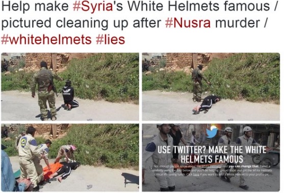 The reality of the Syrian White Helmets, and despite their claims to be unarmed and neutral is that they only operate in the areas controlled by al-Nusra, al-Qaeda, Ahrar al-Sham, Daesh ‘ISIS.’ In these areas, the Syrian White Helmets often accompany these known terrorist organizations with weapons. Despite this, a blind eye is turned towards many of these groups and especially the Syrian White Helmets who fit the failing Western narrative for regime change in Syria. After all, you can’t rob Peter to pay Paul.