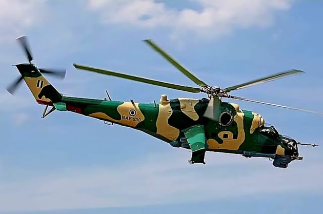 This helicopter is a Mil Mi-35, the export version of the Russian Mi-24 “Hind” attack helicopter. The markings indicate it belongs to the Nigerian Air Force (NAF). Image Credit: The Telegraph