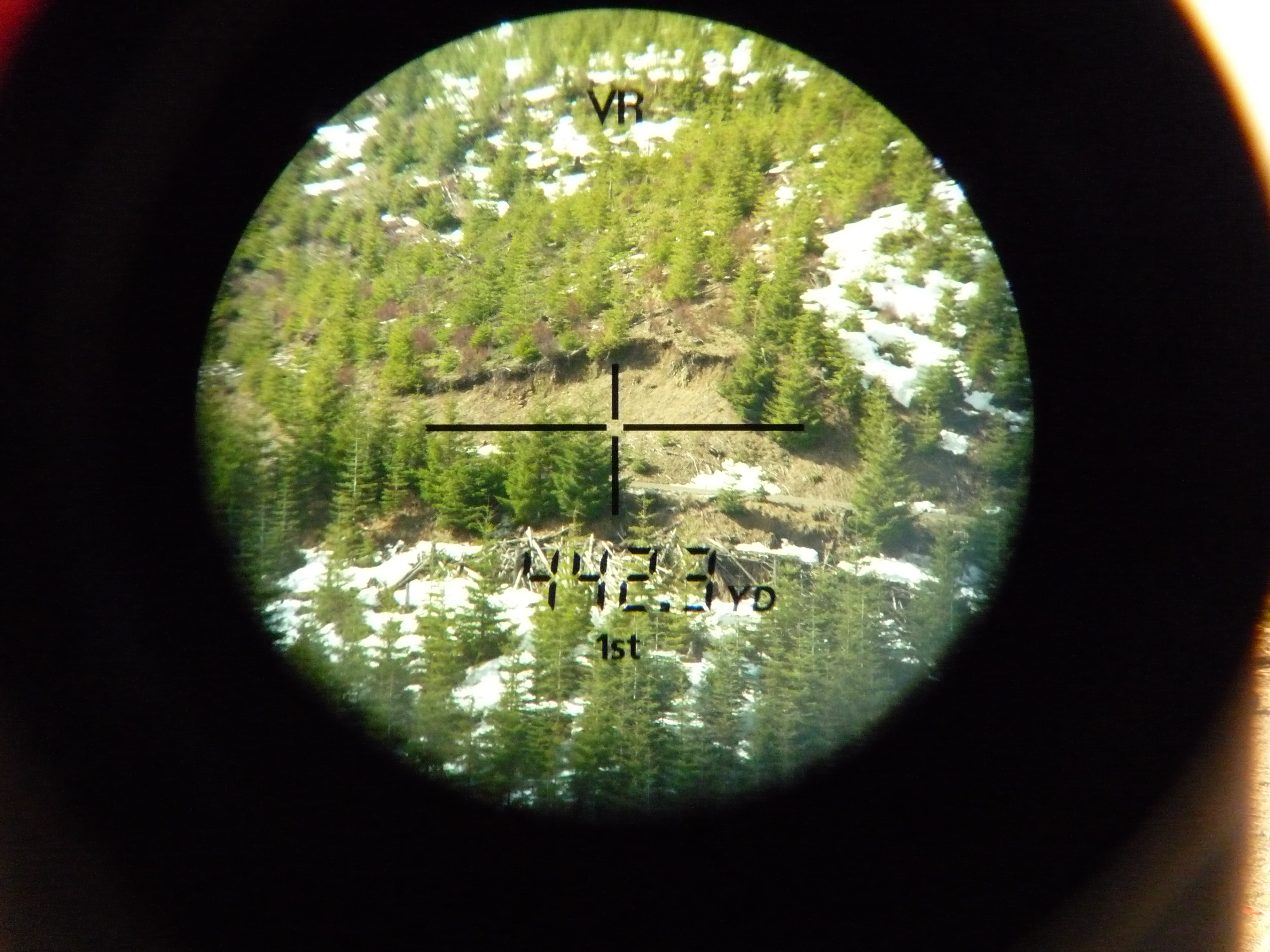 The Monarch picks does a fine job lazing targets. The VR technology really adds a big improvement to the rangefinding game. I feel a great deal more comfortable and confident I’m getting a reading from just the right spot and no other. When you’re nearing the transonic threshold of a bullet, knowing your hitting at 841 yards instead of the 875 you estimated, is the difference between an emphatic hit and a near miss. I had no trouble picking out non-reflective targets out to 799.9 yards. I didn’t have good perpendicular targets past that, just the many waves of treetops swaying in the wind. While the Monarch doesn’t give the fastest result I’ve ever seen, it does give me a reading I feel most confident in trusting. The VR technology and readings down to a tenth of a yard lend themselves to great accuracy.
