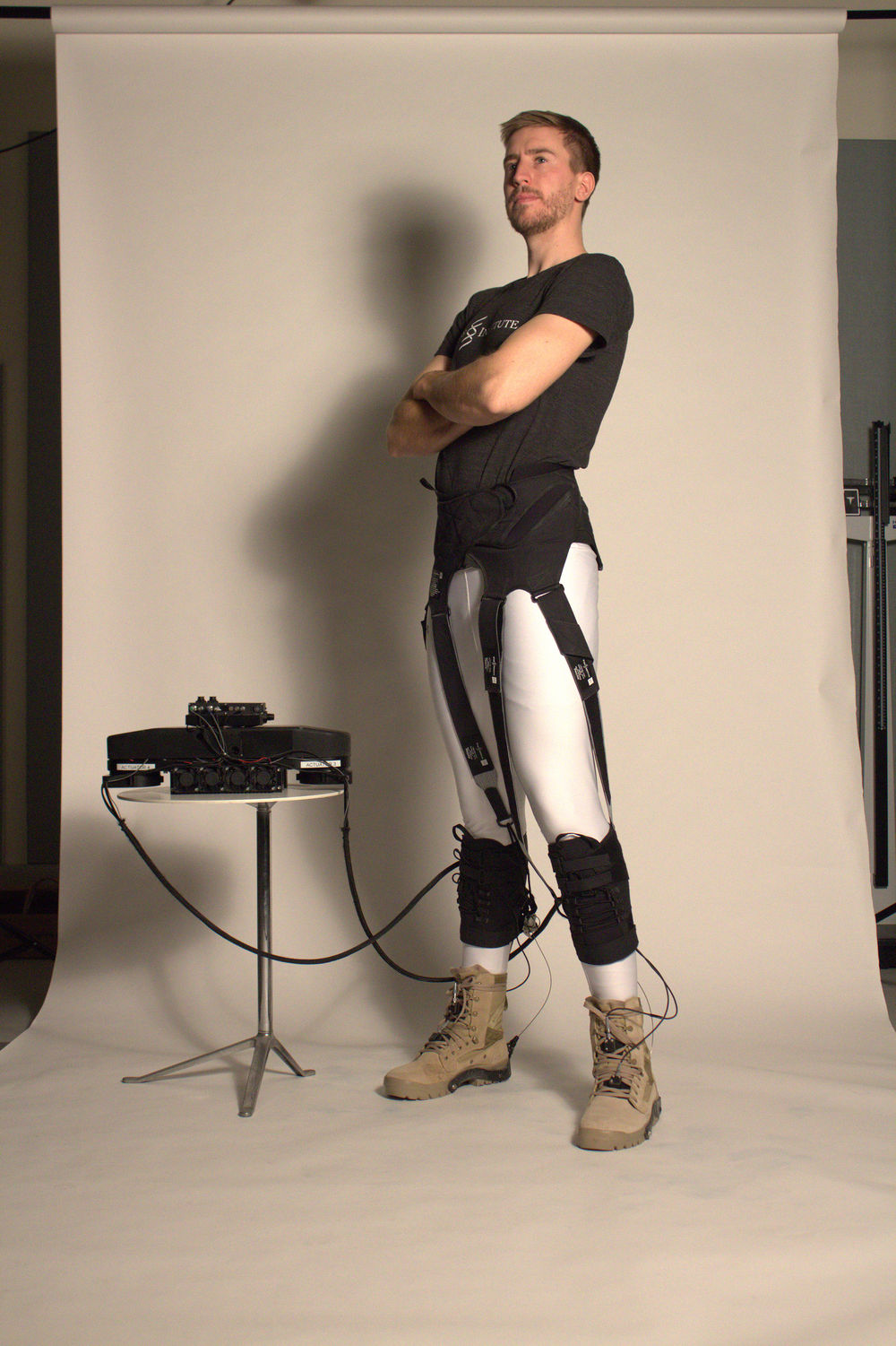 By attaching a series of fabric components to the human body, at the hip, ankle, and calf, then using bands to connect them in specific ways, the suit serves as a supplement to the body’s natural movements via an electric motor at the ankle.