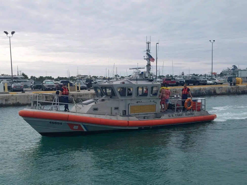Rescue: On Wednesday, January 9, a 30-foot vessel capsized off the coast of the Florida Keys, sending Sean Johnson, Craig Zetwick, and Ken Kuhfuss into the water. One of the victims was able to radio for help, and the Coast Guard dispatched a 45-foot Response Boat—Medium from Key West. Once on scene, the Coasties found the three men hanging onto the hull of their capsized vessel. Although one man had on a life vest, the other two did not. Coasties swiftly rescued the men—none of whom had any serious injuries—and returned them safely to shore.