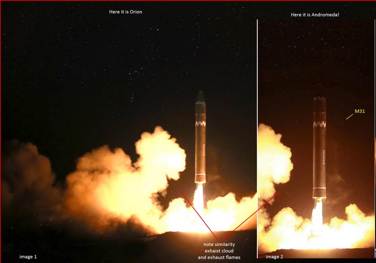“So, I just discovered that the North Koreans DID tamper with their #Hwasong15 launch photo’s! Two images from clearly same viewpoint, but dramatically different star backgrounds! Orion (Southeast) versus Andromeda (Northwest)!” Dr. Lanbroak pointed out on his Twitter account. It would seem then that the stars were added to the images after the fact, but that does beg the question, why?