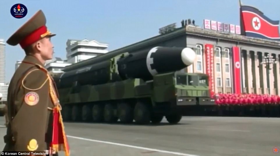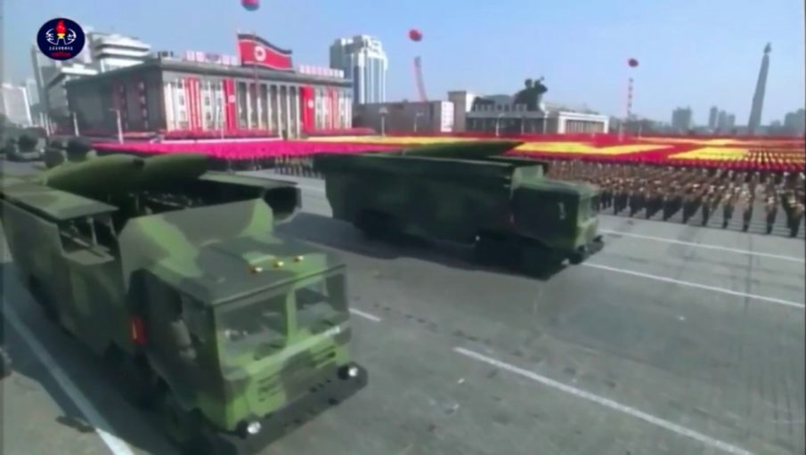 Shot of a Hwasong-15 ICBM in North Korea’s military parade, released on North Korean Central Television.