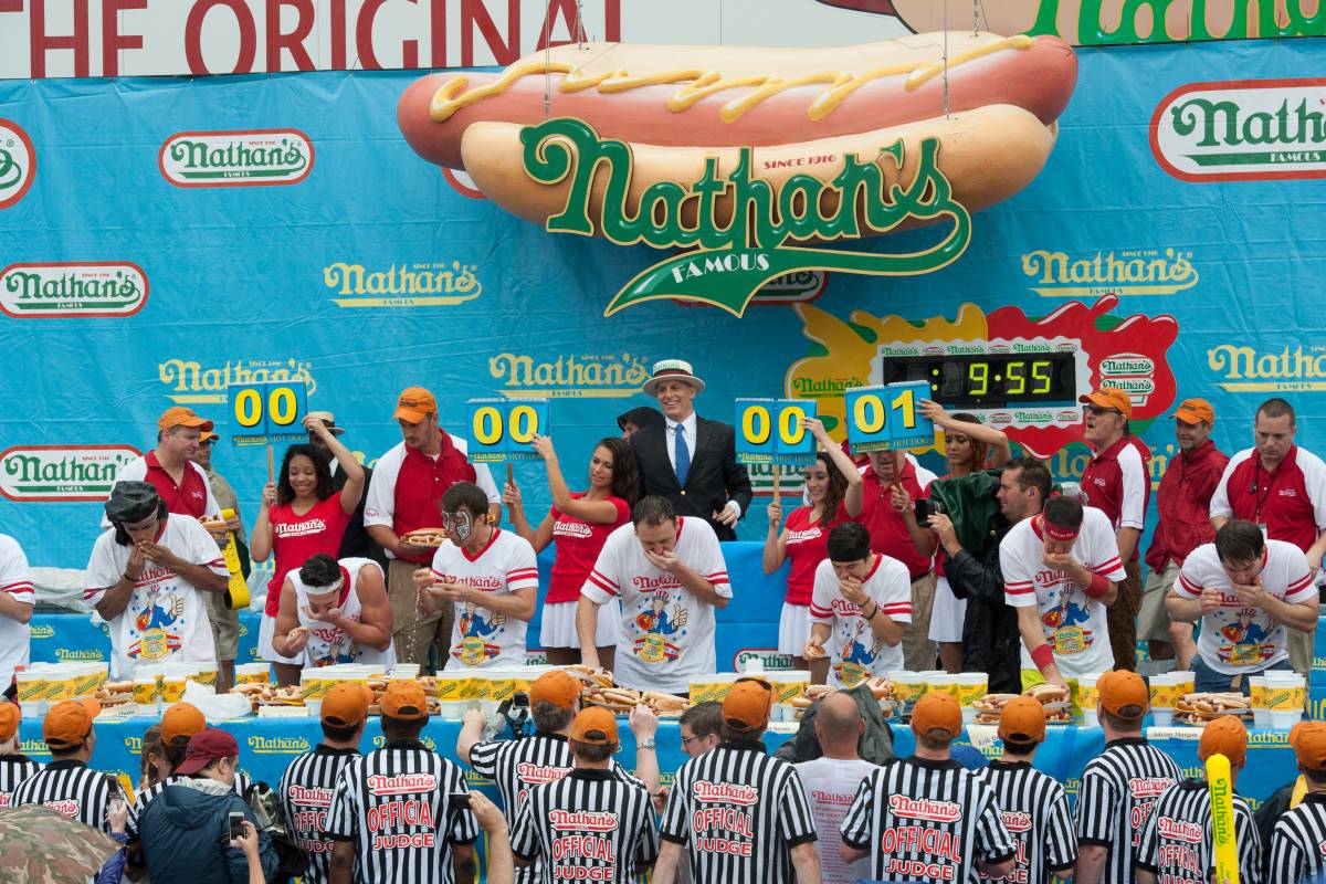 An American tradition. Chowing down on hot dogs on the Fourth of July. Image Credit: nycgo.com