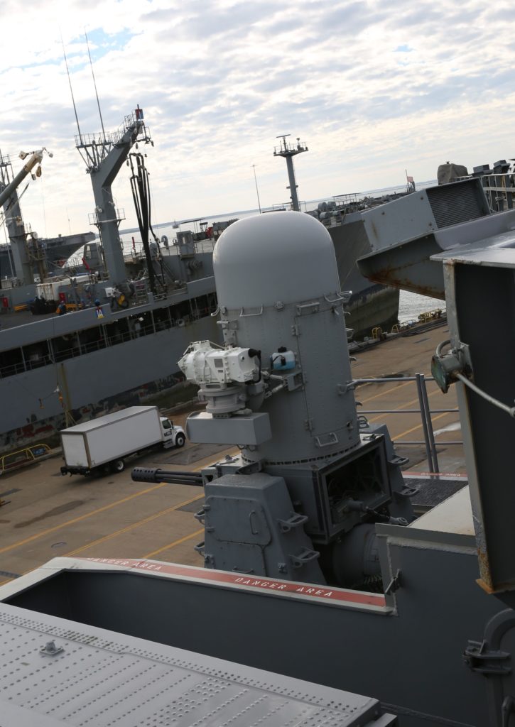 When Finn hears the call he is sitting astride a big Gatling gun on one of the ship’s CIWS (close-in weapons systems, pronounced sea-whiz) mounts, like Major Kong (Slim Pickens) riding his A-bomb in Dr. Strangelove.