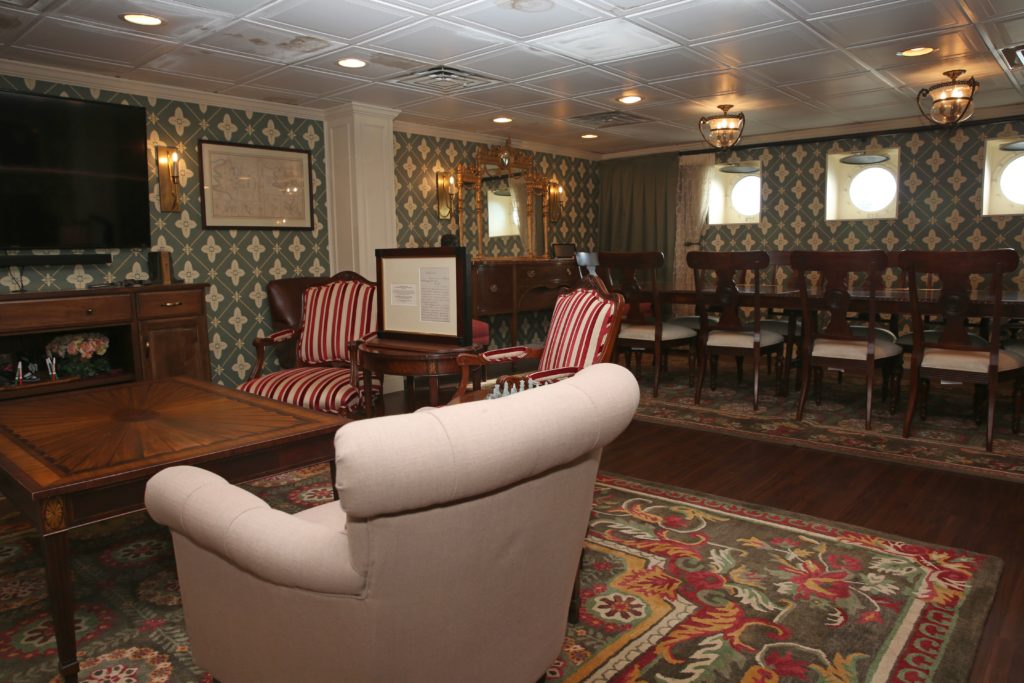 Later Finn’s investigations take a more devious turn, as he breaks into the captain’s cabin (located on the gallery deck, just below the flight deck) and searches Eagleberg’s parlor, what the captain calls the “Lincoln Room.”