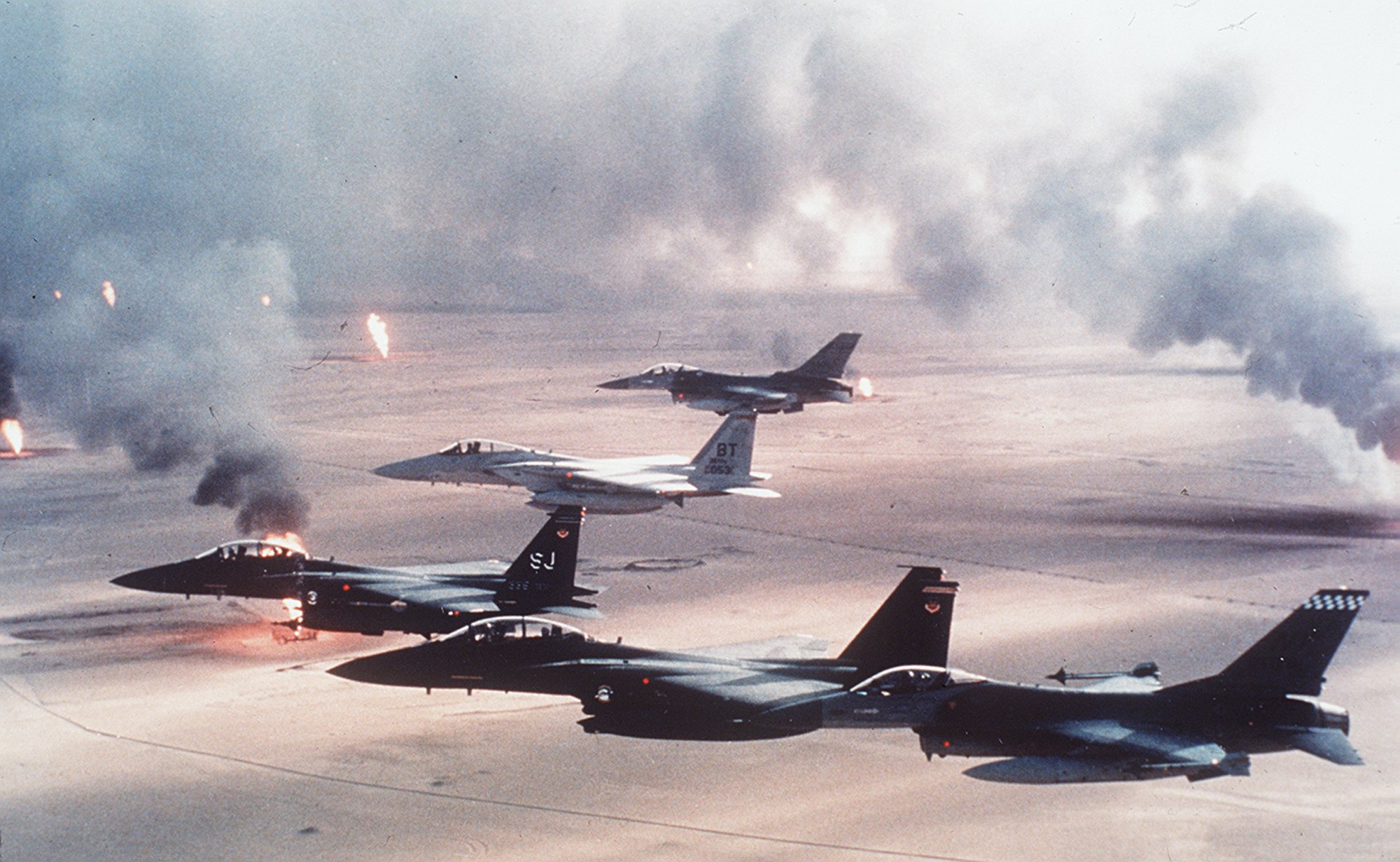 As many Iraqi forces were retreating, they set fire to the oil fields which is where you get some of the most iconic pictures of the war.