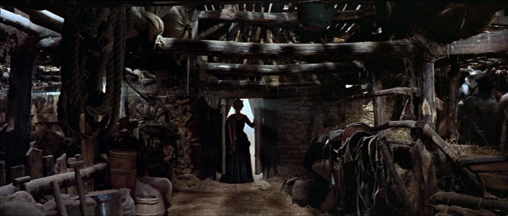 And yet his expansion of civilization isn’t a positive force in the film — it’s one of the main sources of conflict. And in the Wild West, the man with all the money, influence and technology under his belt is actually the weakest of them all. Not only does he have his physical afflictions, but he is morally corrupt as well. So when his crutches of civilization are stripped away, we realize that he has no physical power, and he has no honor or dignity either.