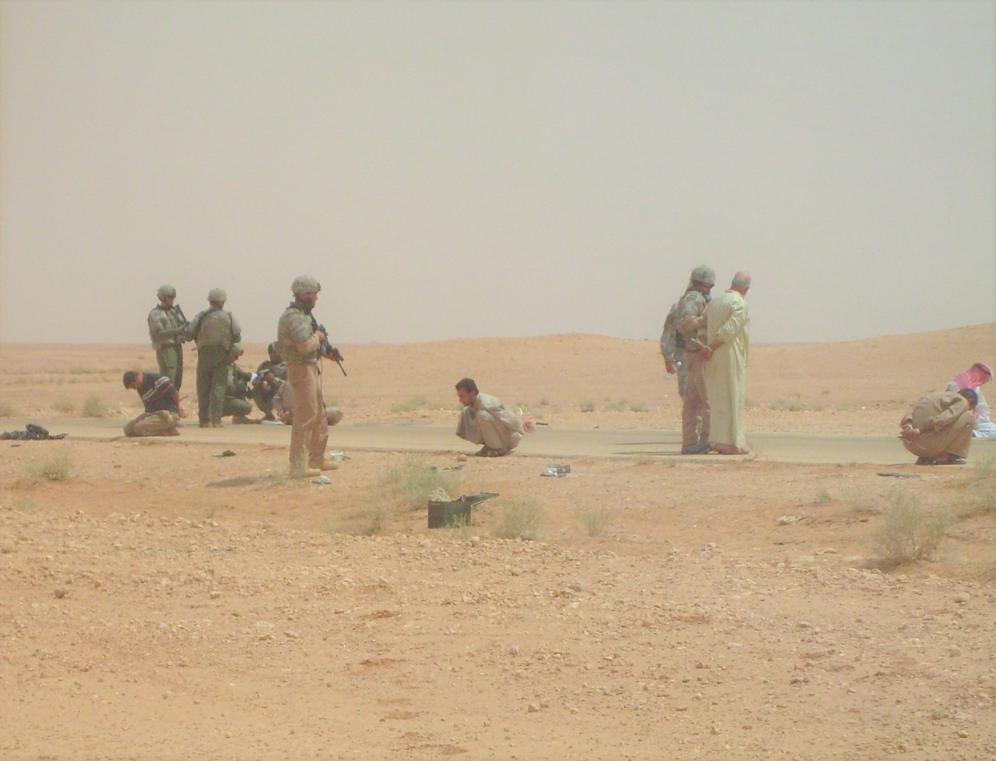 Each passenger was taken out at gunpoint—the interpreter instructed them to keep their hands up while they were searched for weapons. The tension was high. Not knowing if one of these individuals was going to fire on us or detonate a bomb had us all on edge. Once the vehicle was empty, we had 10 individuals detained, including three children—two boys and a girl.
