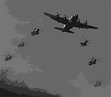 Led by an MC-130 guideship, a formation of 6 helicopters would leave Thailand, fly across Laos and into North Vietnam at low level. Approaching the camp, another MC-130 would release flares as the helicopters prepared to land.