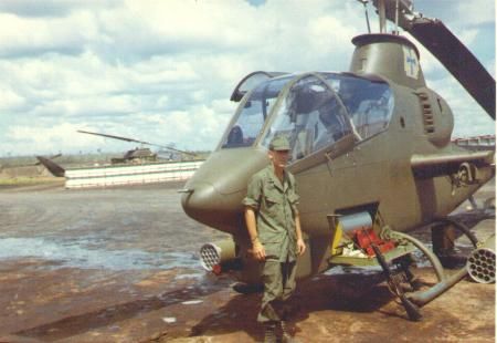Driscoll and fellow pilots flew the early model AH-1G Cobra gunships, with one man sitting in the front seat and a pilot sitting behind him. A relative of the more familiar Huey helicopter, the Cobra was designed strictly as a weapons platform. Driscoll’s Cobra had two 19-shot 2.75 rocket launchers, two seven-shot rocket pods, one 7.62mm minigun that fired 6,000 rounds a minute, and a grenade launcher.