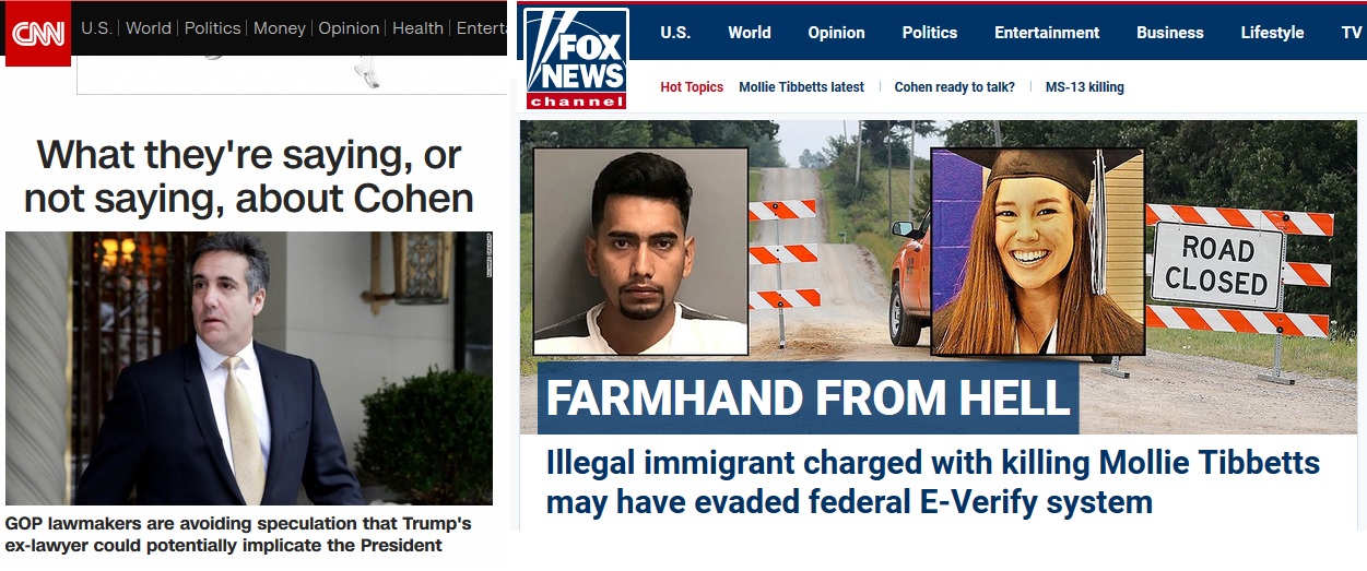 If you’re the type of person that prefers to get your news from Left-leaning outlets, the most important story in the world this morning revolves around the former lawyer of the president potentially implicating him in criminal proceedings. If you prefer Right-leaning outlets, the most important story in your world this morning is about Mollie Tibbets being killed by an illegal immigrant. I want to emphasize that I’m not saying either of these stories are unimportant, I’m not even arguing that one is more important than the other. What I want to impart is that Fox News knows their audience isn’t buying the Cohen story and CNN knows theirs will. While these two outlets likely do have some underlying agendas, even in their absence, the straight dollars and cents of the situation dictates what story to feature more prominently. After all, the customer is always right.
