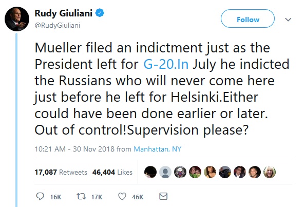 This past Friday, President Trump’s lawyer and famed former NYC mayor Rudy Giuliani posted what has become a run of the mill tweet from members of the Trump administration: accusing Special Counsel Robert Mueller of using his position to negatively affect the president’s national and international endeavors. The tweet in itself wasn’t extraordinary, but a quick-fingered typo ended up causing a great deal of trouble.