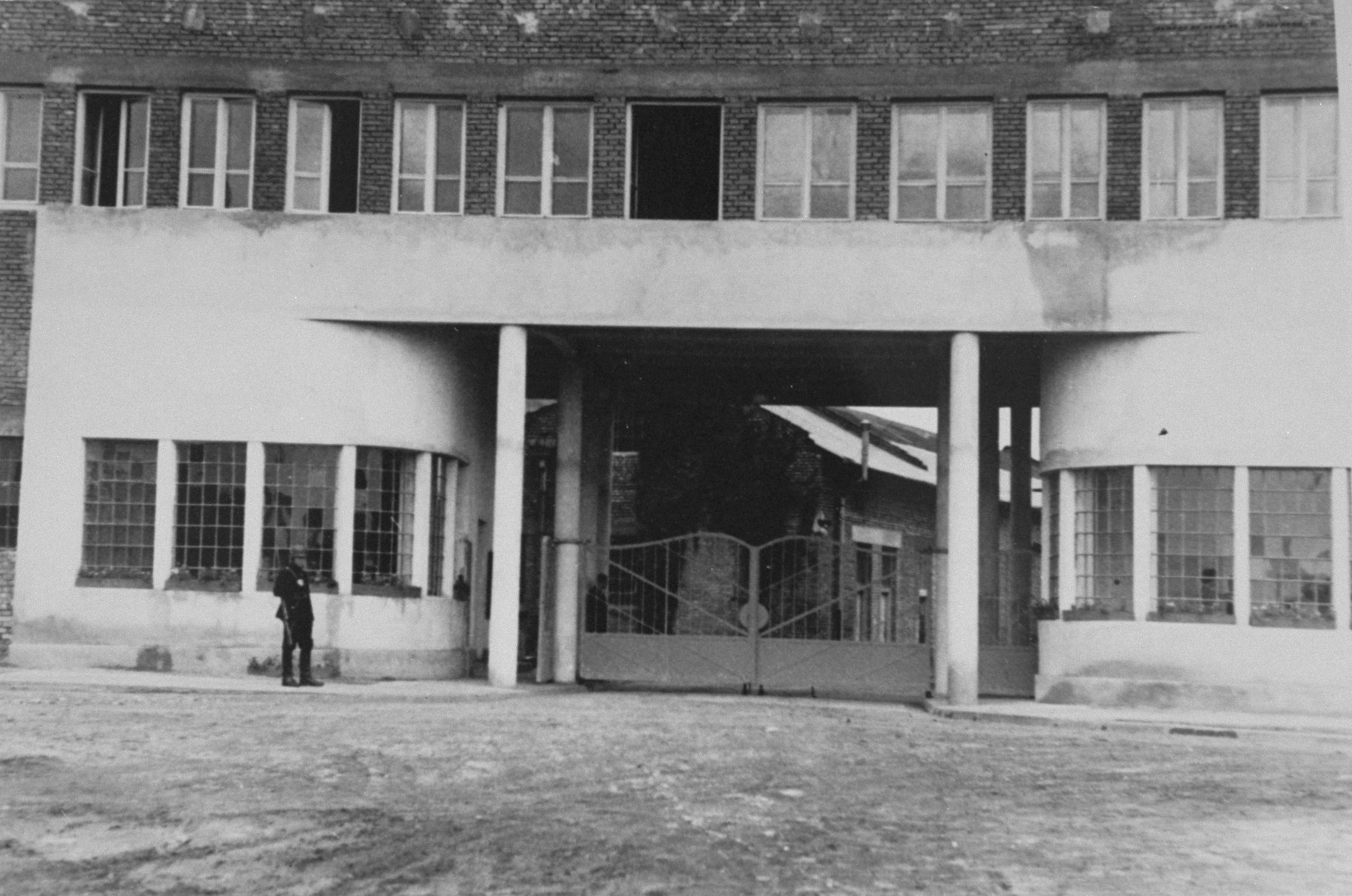 The entrance to Oskar Schindler’s Emalia enamel works at 4 Lipowa Street in Krakow-Zablocie. (United States Holocaust Memorial Museum, courtesy of Leopold Page Photographic Collection)
