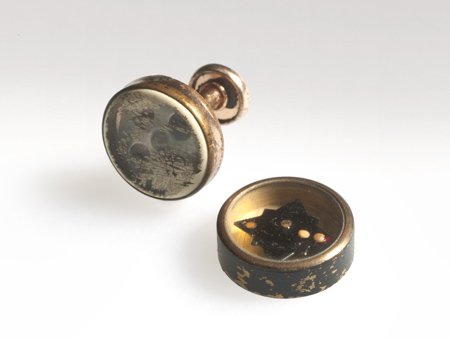 General Donovan motivated the Office of Strategic Services (OSS) research and development branch to fabricate weapons in-house for officers in the field. These weapons ranged from the amazingly complex to the remarkably fundamental. OSS guns and blades were intended for simple but effective use. American servicemen going into harm’s way had a variety of ingenious places to hide small, even miniature, compasses for escape and evasion—in combs, razors, uniform buttons, or, as seen here, in cufflinks.