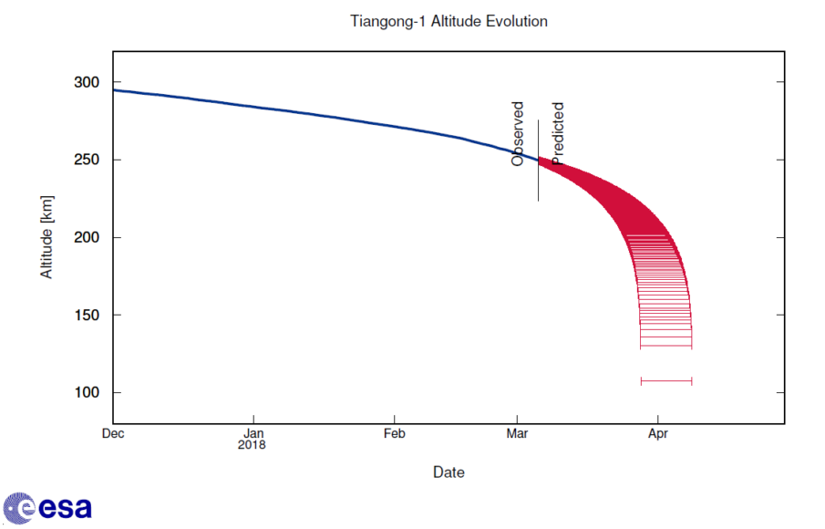 Tiangong-1 altitude decay forecast as of 6 March Credit: ESA